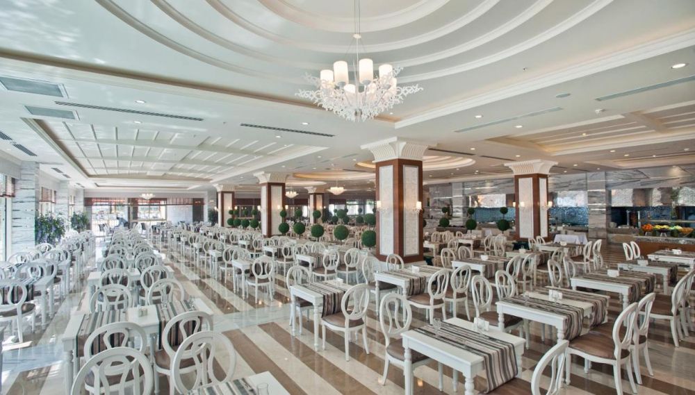 Основен ресторант с диетично и вегетарианско меню, 5 ресторанта a - лa - карт (италиански, турски, рибен, мексикански, китайски), 6 бара, открит басейн, закрит басейн, 3 водни пързалки, кинотеатър, лекарски кабинет, SPA - център, фризьор, магазини,2 конферентни зали. За децата: детско меню, детски басейн, аквапарк, детски мини клуб(4-12г.), младежки клуб(13-16г.) Безплатни услуги: турска баня, сауна, вътрешен басейн, тенис на корт, тенис на маса, дартс, мини голф, баскетбол, фитнес зала, Интернет. Платени услуги: масаж, билярд, боулинг, кан, водни спортове, фризьор, СПА - център.