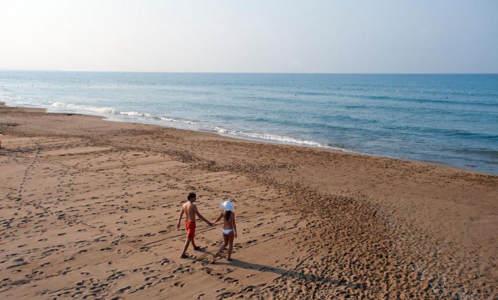 Собствен пясъчен плаж. Чадъри, шезлонги и матраци - безплатно. Плажни хавлии - срещу депозит.