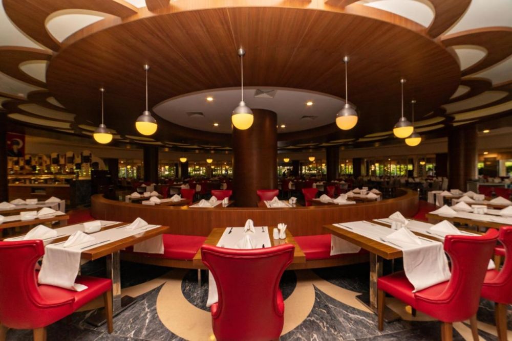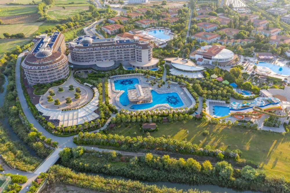 Основен ресторант, 4 а-ла-карт ресторанта (турски, китайски, италиански, рибен, с предварителна резервация, за едноседмичен престой едно безплатно посещение на един ресторант), кафе-сладкарница, 6 бара, 3 открити и 1 закрит басейн, водни пързалки, 2 тенис корта, амфитеатър, дискотека, конферентна зала, мини маркет. За децата: детски басейн, анимация, мини клуб (4-12 г.),тийни клуб (11-15 г.). Безплатни услуги: сауна, турска баня, фитнес, аеробика, плажен волейбол, тенис на маса, тенис корт, дартс, боча, анимация, Wi-Fi(в лоби). Платени услуги: Масаж, фризьор, лекар, химическо чистене, боулинг, билярд, електронни игри, игрални автомати, рент-а-кар, тенис екипировка, осветление за тенис корт, водни спортове.