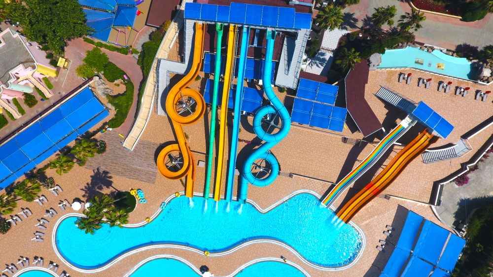 Основен ресторант, 7 а-ла-карт ресторанта (срещу заплащане), бар, 2 открити басейна, аквапарк с 13 водни пързалки, Спа център, сауна, турска баня, масажи, джакузи, безмоторни водни спортове, кану, водни колела. Безплатни услуги: интернет ( в лобито) плажен волейбол, баскетбол, гимнастика, аеробика, тенис на маса, дартс. Платени услуги: билярд, боулинг, видео игри, химическо чистене. За децата: детски басейн, мини клуб, 4 водни пързалки. Плаж: пясъчен, на 450 м. от хотела. Чадъри, шезлонги и плажни кърпи на плажа и при басейна - безплатно.