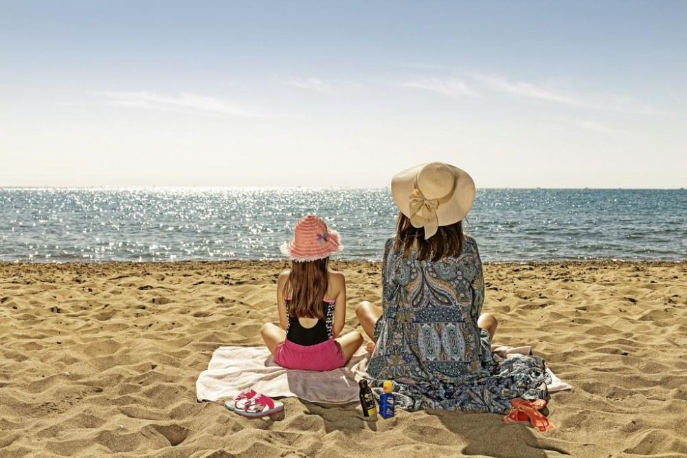 Собствен, пясъчен. Чадъри, шезлонги и плажни кърпи на плажа и при басейна - безплатно.