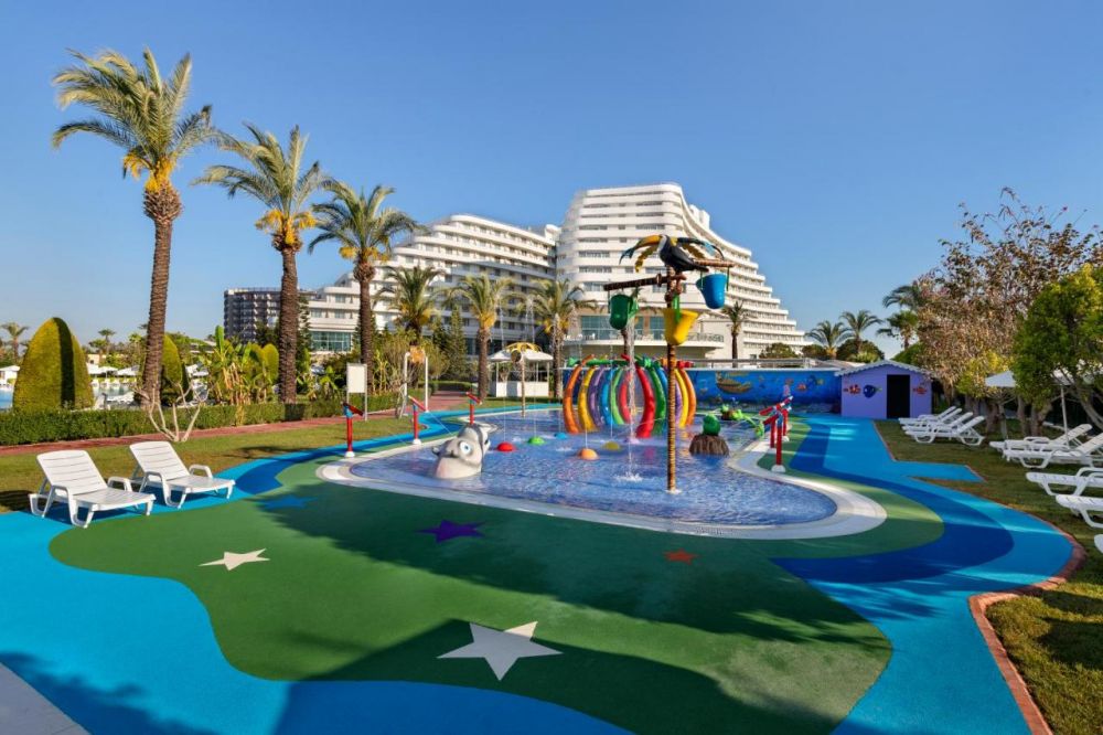 Хотелът се намира на 10 км от летище Анталия, на 15 км от центъра на Анталия, на брега на морето. Построен през 2005 г. с обща площ от 135 000 м2. последно реновиран през 2016г.