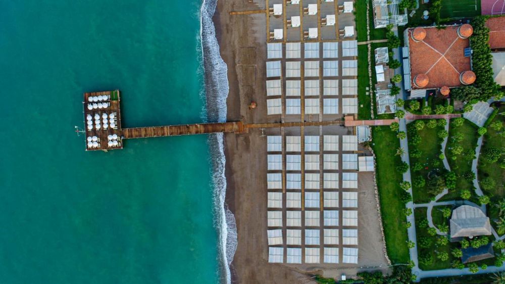 Хотелът се намира на брега на морето, в района на Лара, на 12 км. от центъра и 10 км. от летището на Анталия. Построен е през 2005г. и е последно реновиран 2019-2020г. с обща площ от 33 000 кв.м.
