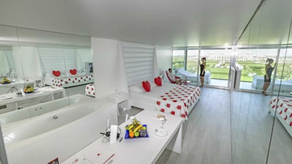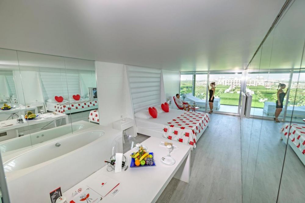 Стаи Villas: 45 Dublex Swim up (с изглед градина или басейн - 1 спалня, 1 хол, 1 сауна, 2 бани (1 парна баня + 1 баня с душ), 1 гардеробна, тераса с достъп до общ басейн, 9 Adam Villa (с изглед градина или басейн - спалня, хол + eдинично легло, 1 сауна, 2 бани (1 парна баня + 1 баня с душ), тераса с достъп до общ басейн - 175 м2), 10 Eve Villa (с изглед градина или басейн - 1 голяма спалня, 1 допълнителна спалня, 1 хол, 1 сауна, 2 бани (1 парна баня + 1 баня с душ, 1 тераса за плуване - 200 м2), Presidential Party Villa (1 голяма спалня, 2 допълнителни спални, 1 хол, 1 бар, 1 кухня, 2 сауни, 3 бани с 1 парна баня, 3 гардеробни - 500 м2, частична градина и частен басейн - 80 м2).