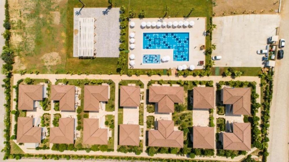 Собствен, пясъчно - чакълест. Чадърди, шезлонги и матраци на плажа и при басейна - безплатно.