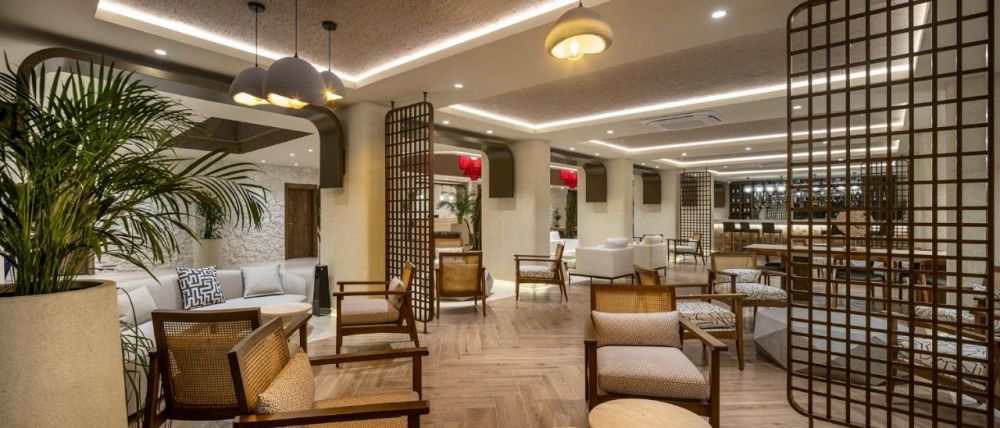 Основен ресторант, сладкарница, лоби бар, лаундж бар, бар при басейна, плажен снек бар, основен басейн, детски басейн, водни пързалки, фитнес, 24 часа рецепция, конферентна зала.