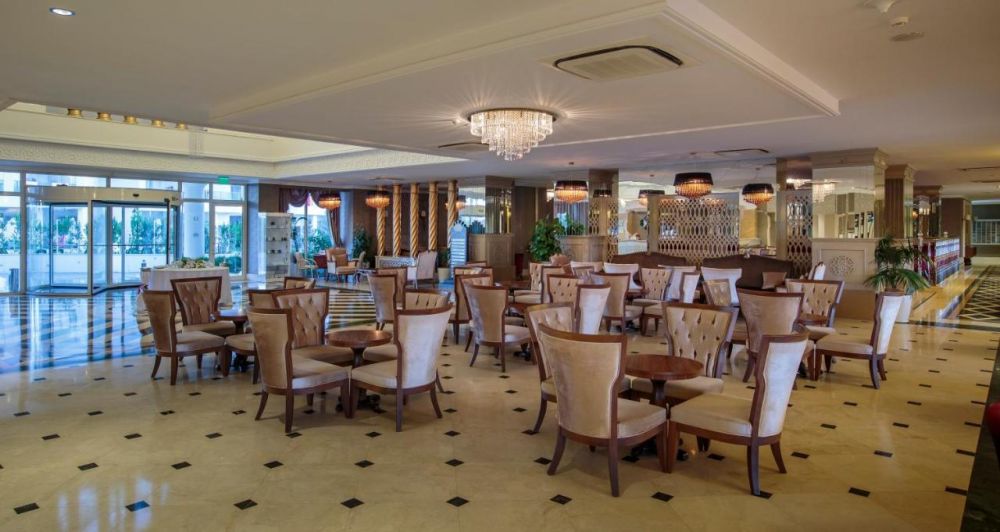 Основен ресторант, 2 а-ла-карт ресторанта (турски, италиански – 1 безплатно посещение на 1 от ресторантите при минимален престой от 5 нощувки, с предварителна резервация), сладкарница, 3 бара, снек бар на плажа, 1 открит и 1 закрит басейн, аквапарк с 3 водни пързалки, СПА център, магазини, паркинг.