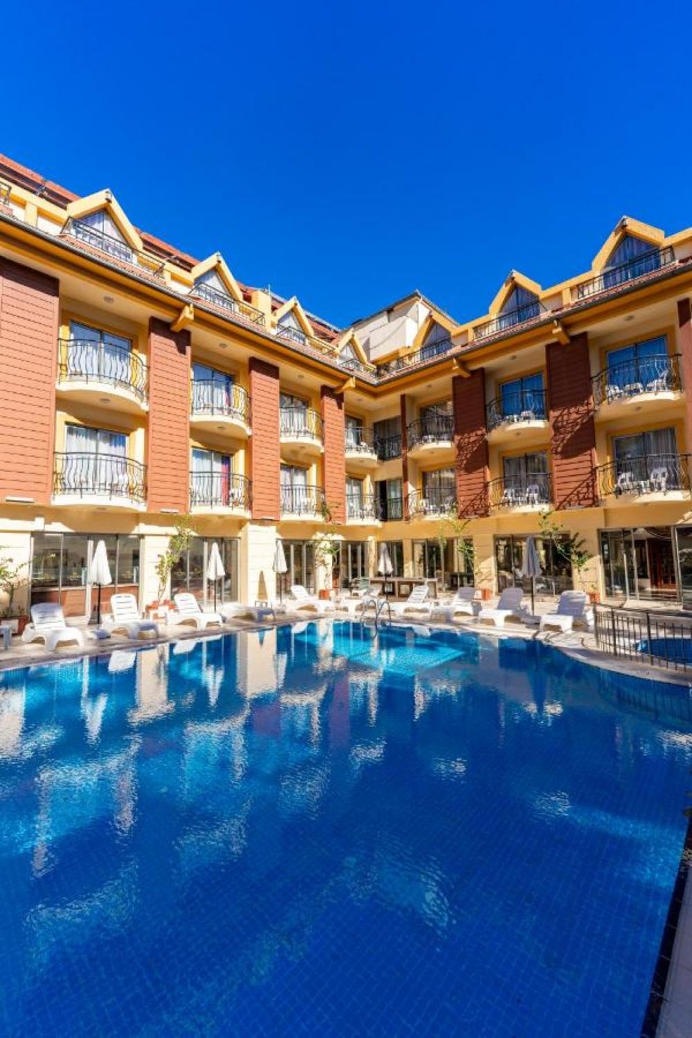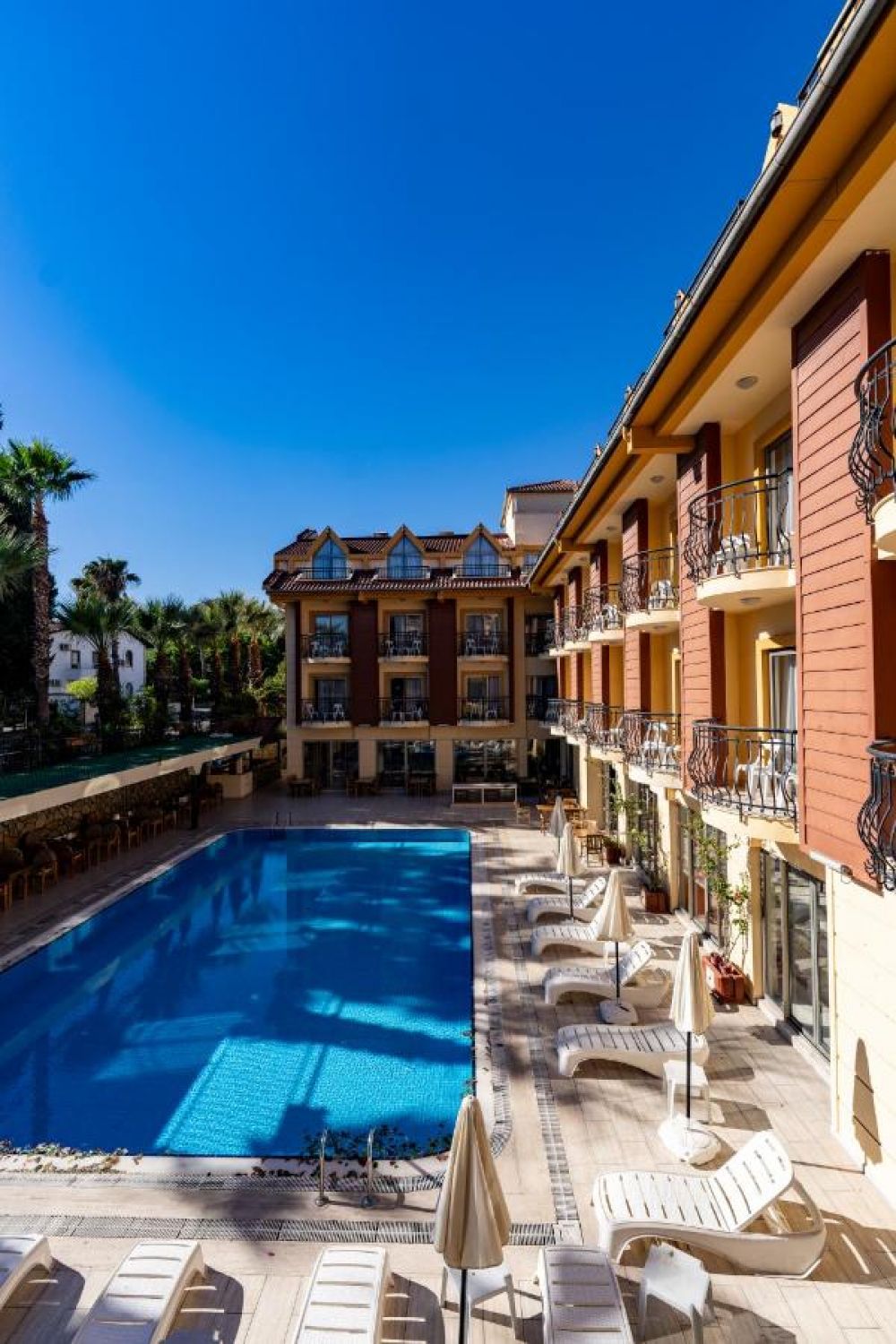 Хотелът е разположен на 55 км. от Анталия, на 100 м. центъра на Кемер, на 220 м. от брега на морето. Построен през 2006 г. с обща площ 2100 м2.