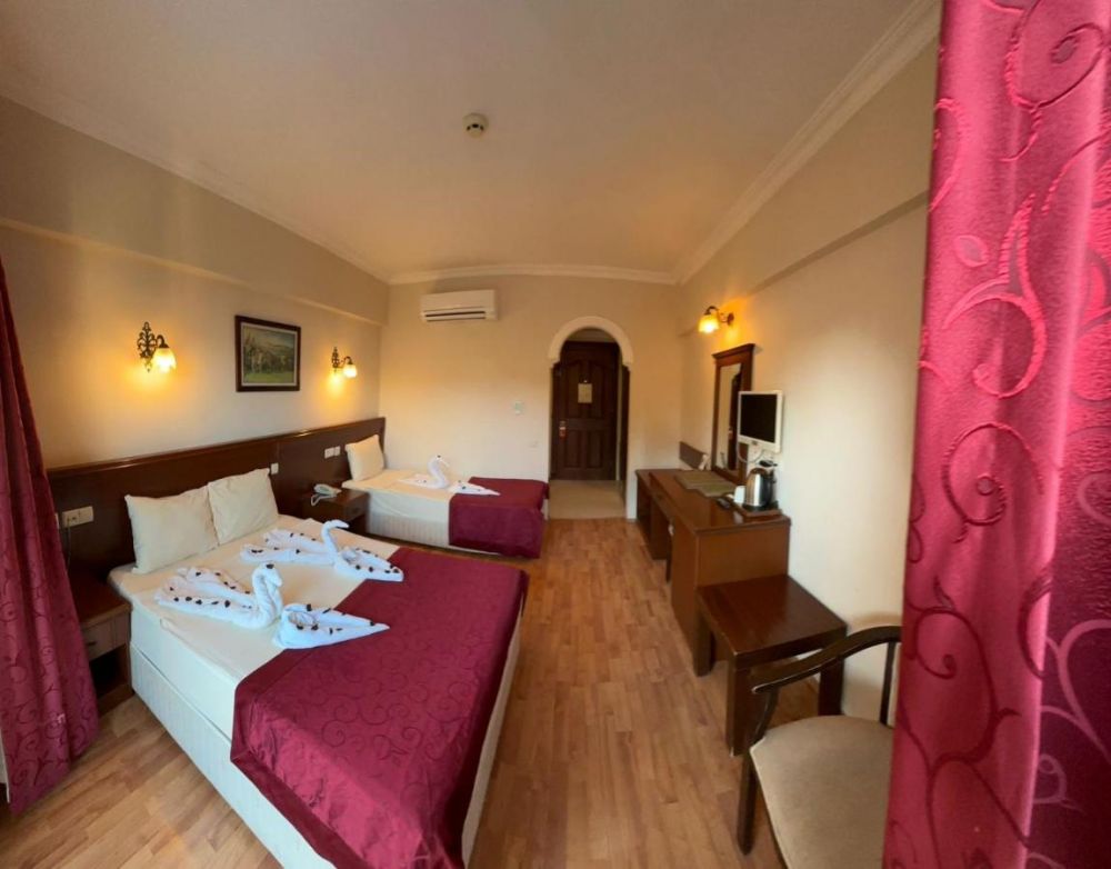 Климатик, баня с душ , сешоар, телевизор ,телефон, мини-бар (при настаняване – зареден с вода, безплатно), сейф (в стаята, платено) ,под – ламинат ,балкон ,почистване на стаята – ежедневно ,смяна на спалното бельо – 3 пъти в седмицата.