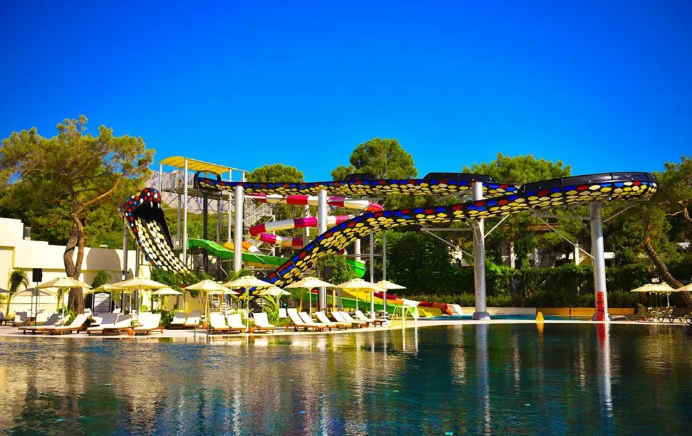 Основен ресторант, 2 а-ла-карт ресторанта (средиземноморски и стек – платени, с предварителна резервация), сладкарница, 8 бара, 2 открити и 1 закрит (отопляем) басейн, аквапарк, СПА център, дискотека, магазини, конферентна зала.