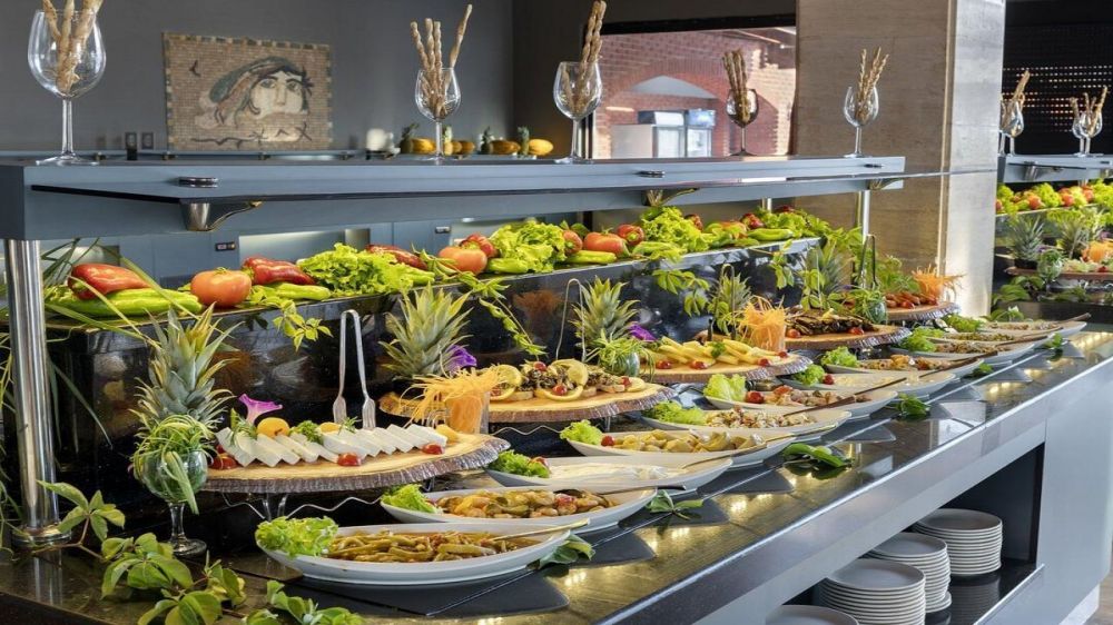 Заведения за хранене: основен ресторант, снек ресторант, гьозлеме пекарна, сладкарница, 5 бара, а-ла-карт ресторанти (рибен и турски) — с 1 безплатно посещение при условия на престой ≥ 7 нощувки и предварителна резервация.