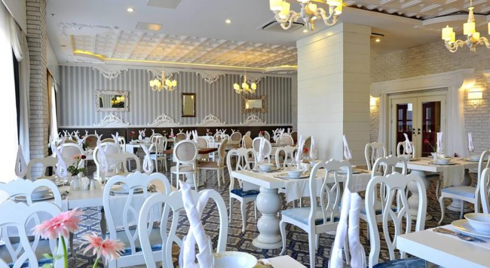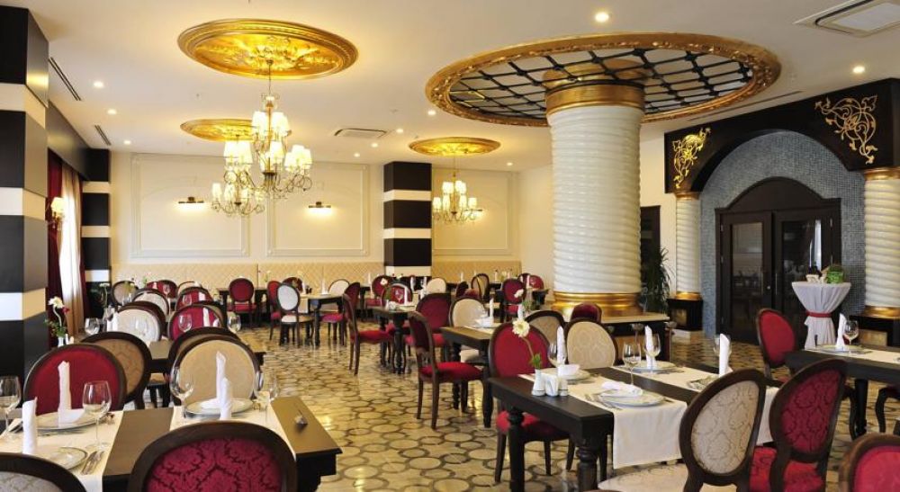 Основен ресторант, 3 а-ла карт ресторанта с предварителна резервация), 3 бара, открит басейн, закрит басейн, фитнес център, амфитеатър, дискотека, магазини, За децата: детски басейн, мини клуб. Безплатни услуги: турска баня, сауна, парна баня, фитнес, тенис на маса, аеробика, водна топка, дартс, плажен волейбол, софт анимация, жива музика, Wi-Fi интернет на лоби /безплатен/. Платени услуги: фризьор, химическо чистене, детегледачка, водни спортове.