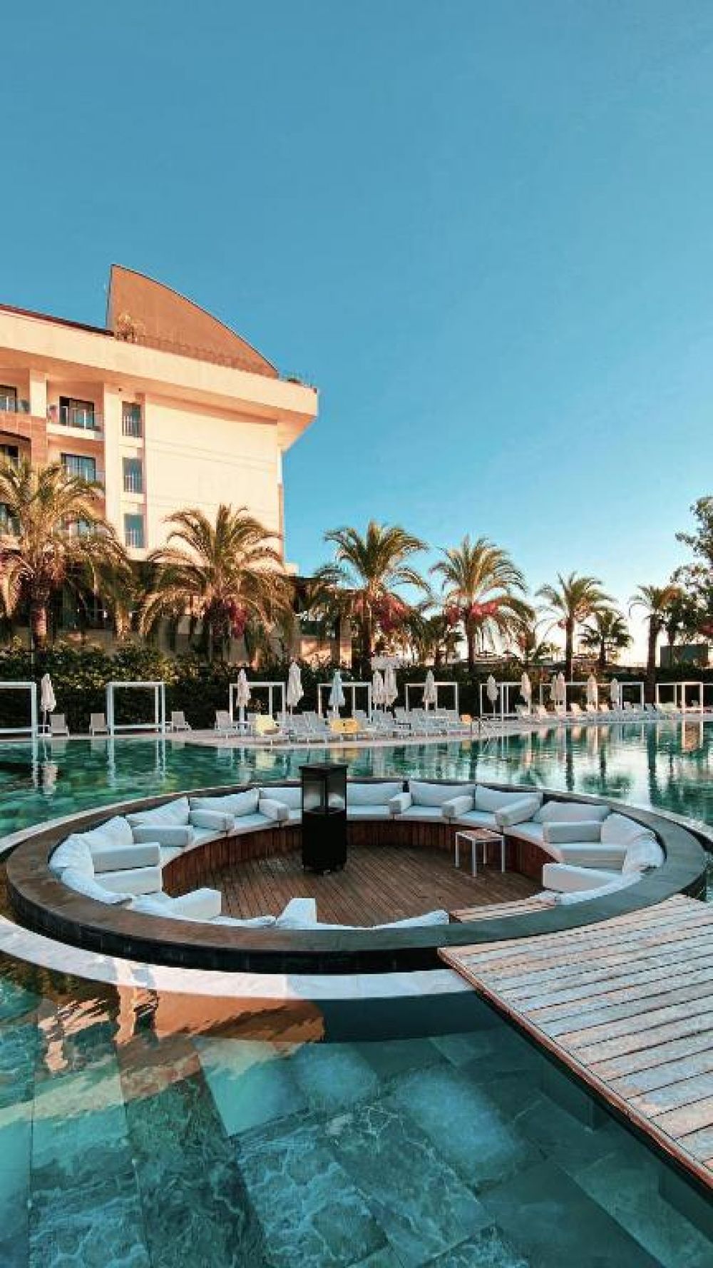 Основен ресторант, 5 а-ла-карт ресторанта (рибен, турски, италиански, барбекю, стек – 1 безплатно посещение при минимум 7 нощувки), сладкарница, 7 бара, открит и закрит (отопляем) басейн, закрит (отопляем) басейн с джакузи, аквапарк, амфитеатър, СПА център, дискотека, магазини, конферентна зала.