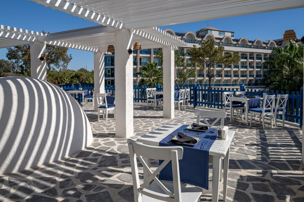 Основен ресторант, 2 а-ла-карт ресторанта (интернационален и рибен - срещу заплащане, с предварителна резервация), снек бар, гьозлеме, сладкарница, 4 бара, 2 открити басейна, 2 водни пързалки, СПА център, магазини, паркинг.
