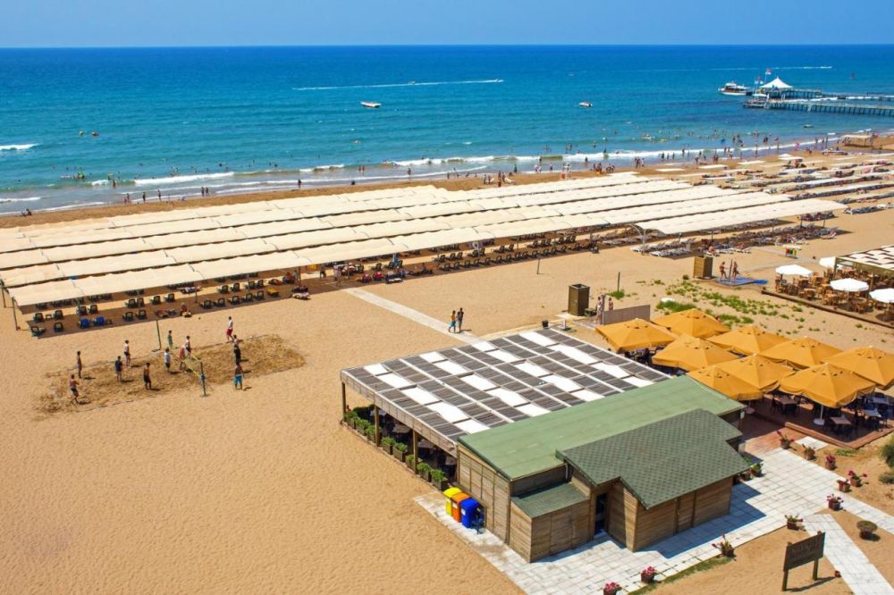 Собствен пясъчен плаж на 200 м, шезлонги, чадъри и плажни кърпи безплатни.