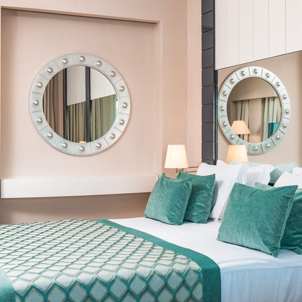 Стаи Main Building:  Deluxe Mainbuilding room garden view (спалня, баня, с изглед градина - 28 м²), Deluxe main building room sea view (спалня, баня, с изглед море - 28 м²), Deluxe Room Wood Terrace (спалня, баня, с изглед море - 28 м² - 30 м²), Main Building Senior Suite (спалня, хол, баня, с изглед море - 72 м²), Premium Room Garden View (спалня, баня, с изглед градина - 28 м² - 30 м²), Premium Room Sea View (спалня, баня, с изглед море - 28 м² - 30 м²), Premium Room Garden Terrace (спалня, баня, тераса, с изглед море - 28 м² - 30 м²), Premium Quatro Room (спалня, баня - 35 м²), Premium suite room (спалня, хол, гардеробно помещение, баня - 60 м²).
