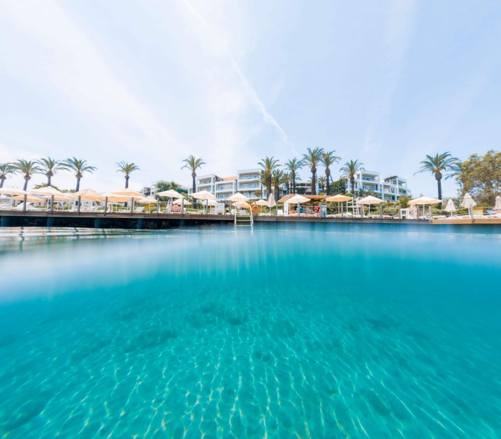 Собствен пясъчен плаж и платформа. Притежател на сертификат "Син флаг" с дължина 250 м. Бар на плажа – безплатно. Чадъри, шезлонги, матраци – безплатно. Плажни кърпи: безплатно. При басейна: чадъри, шезлонги, матраци – безплатно.