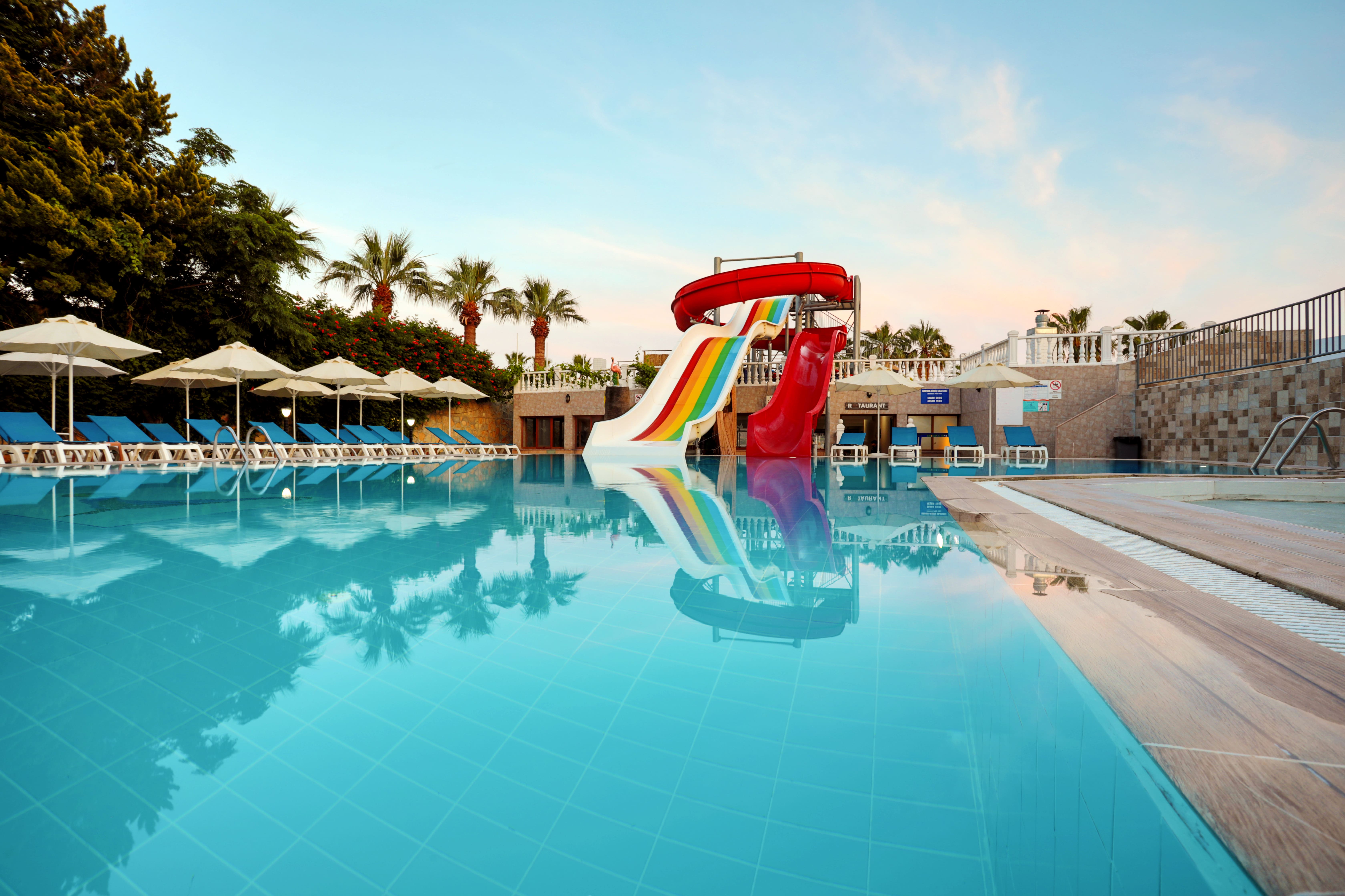 Основен ресторант, 1 бар, 1 открит басейн, 2 водни пързалки, паркинг.
