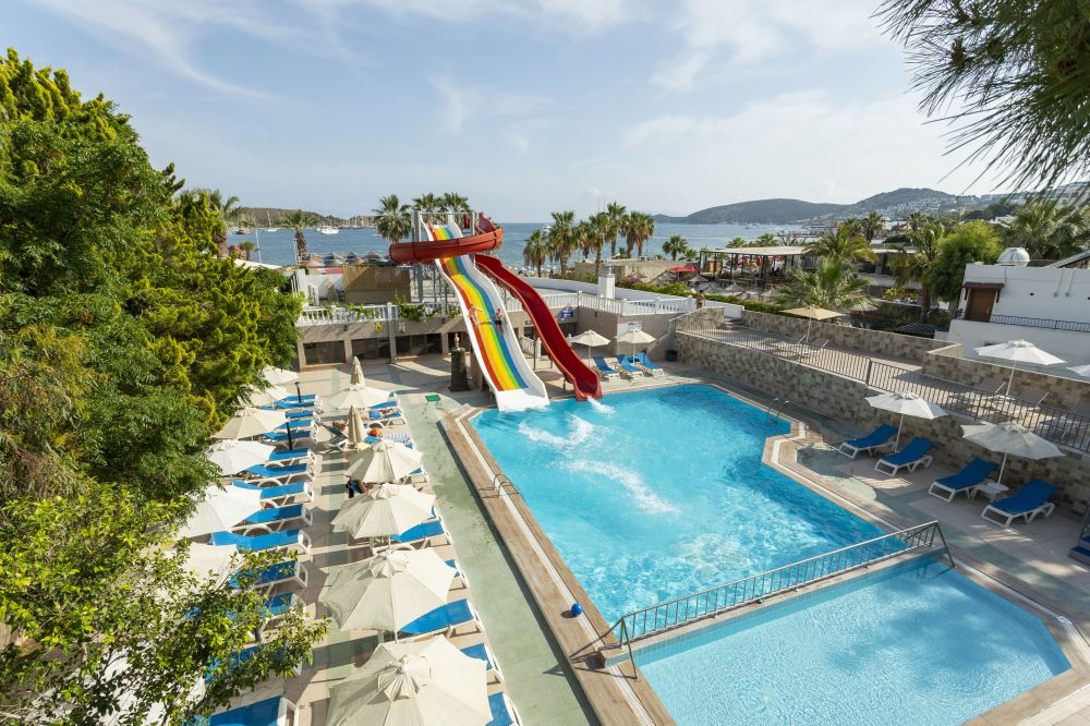 Намира се на 38 км от летище Бодрум, на 3 км от центъра на Бодрум, район Гюмбет, на брега на морето. Построен 1980 г., на обща площ от 4000 м². Частично реновиран 2023 г.