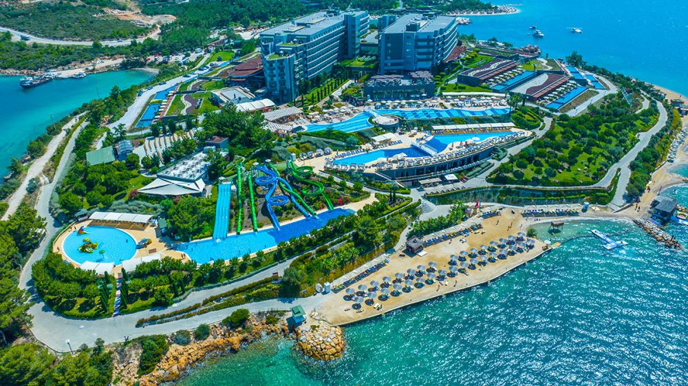 La Blanche Island се намира в уединен и много красив район на крайбрежието на Гюверджинлик с обща площ от 82 000 m². Включва собствена пясъчна ивица от общо 1200 м, и aква парк. Летище Милас Бодрум е на 15 км. Пред хотела има спирка за градски транспорт. Реновация през 2023/4 г на ресторантите, общите части и подобрена Ultra All Inclusive концепция.