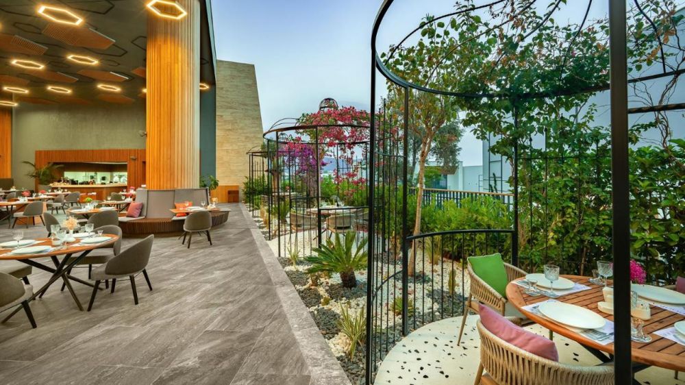 Основен ресторант, 4 а-ла-карт ресторанта (Vetusto - италиански, Koz - турски, Pul - рибен и Gusto 24 - отворен 24/7), 5 бара - Lobby Bar 24/7, Pool Bar 10:00-00:00, Beach Bar 10:00-23:00, Beach Club 10:00-01:00, Relax Bar 10:00-18:00, Snack ресторант, сладкарница, 3 открити и 1 закрит басейн, СПА център.