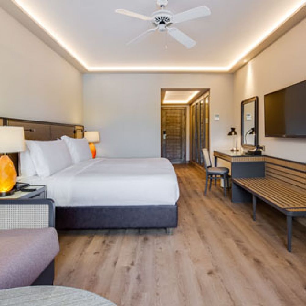 Стаи Standard Room (1 спалня, 1 баня - 33 м²), Superior Room (изглед градина, 1 спалня, 1 баня - 33 м²), Deluxe Garden View (изглед градина, 1 спалня, 1 баня - 35 м²), Deluxe Pool View (изглед басейн,1 спалня, 1 басейн - 35 м²), One Bedroom Suite Pool View (изглед басейн, спалня със зона за сядане, 1 баня - 55 м²), One Bedroom Suite Sea View (изглед море, спалня със зона за сядане, 1 баня - 55 м²).