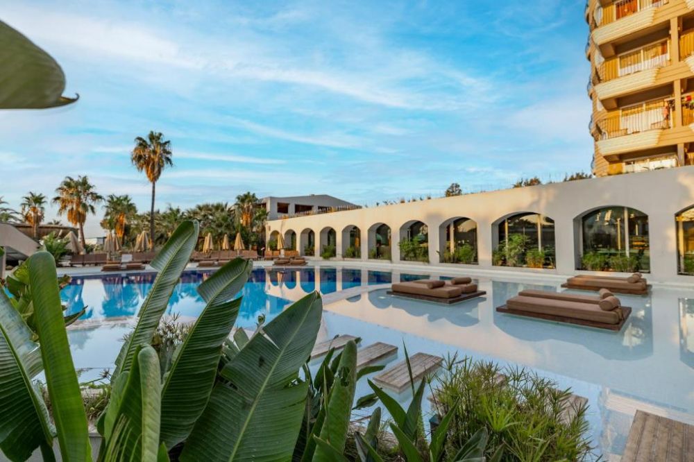Собствен,, пясъчен сдължина 100 м. и платформа, на която е разположен Mocha Beach Club с кабани (срещу заплащане). Чадъри, шезлонги и плажни кърпи на плажа и при басейна -безплатно.
