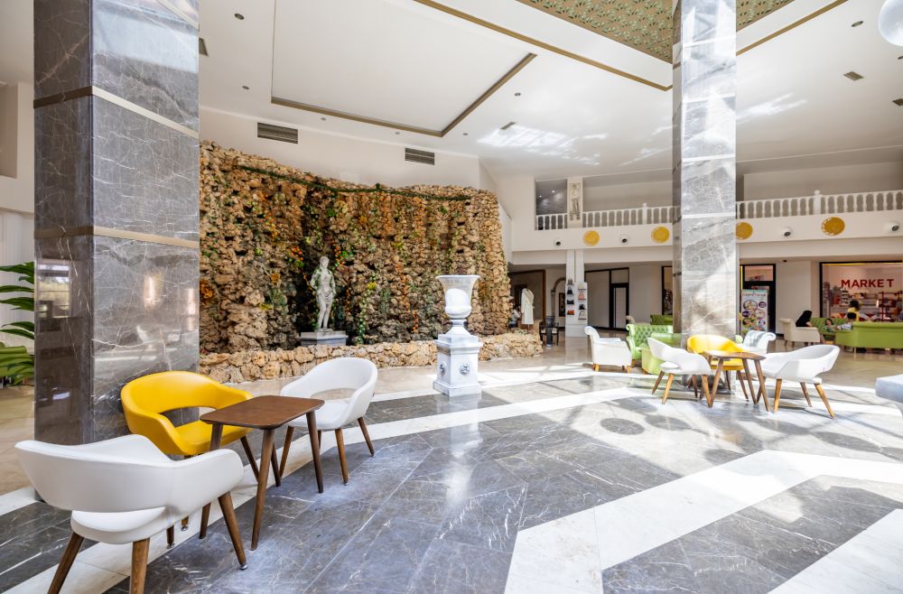 Основен ресторант (диетична секция, бебешко оборудване - блендер, микровълнова фурна, уред за затопляне на бебешка храна), а-ла-карт ресторант (срещу заплащане), лоби бар (24 часа), бар на басейна, снек бар, открит басейн, 2 конферентни зали, магазини, паркинг.
