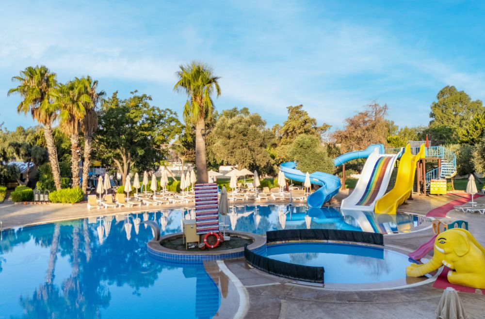 За децата: Детско меню, детски басейн, 2 водни пързалки, детска площадка, мини клуб (4-10 г).