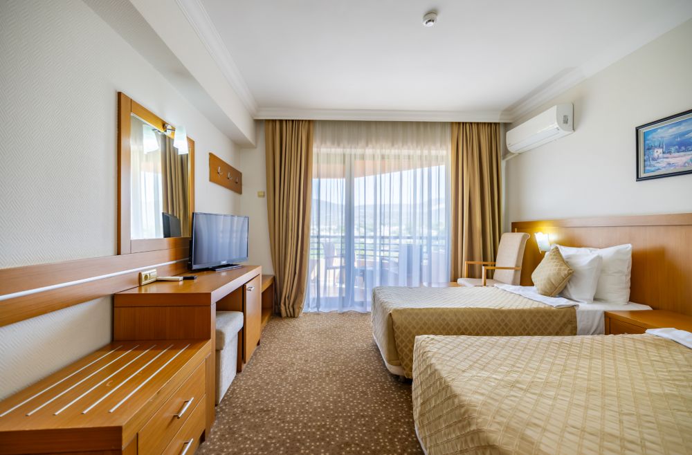 Всички стаи са оборудвани с климатик, телевизор, телефон, баня с душ/вана, сешоар, мини бар (платен), сейф (безплатен), балкон. Почистване на стаите - всеки ден, смяна на спалното бельо и кърпите - 2 пъти в седмицата.