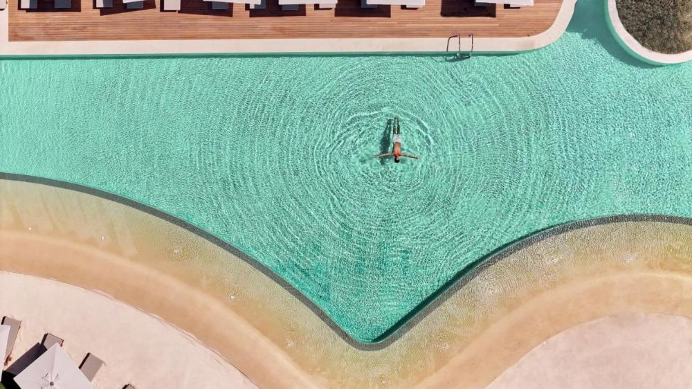 Собствен, пясъчен и платформа. Чадъри, шезлонги и матраци на плажа и при басейна - безплатно. Плажни кърпи - безплатно.
