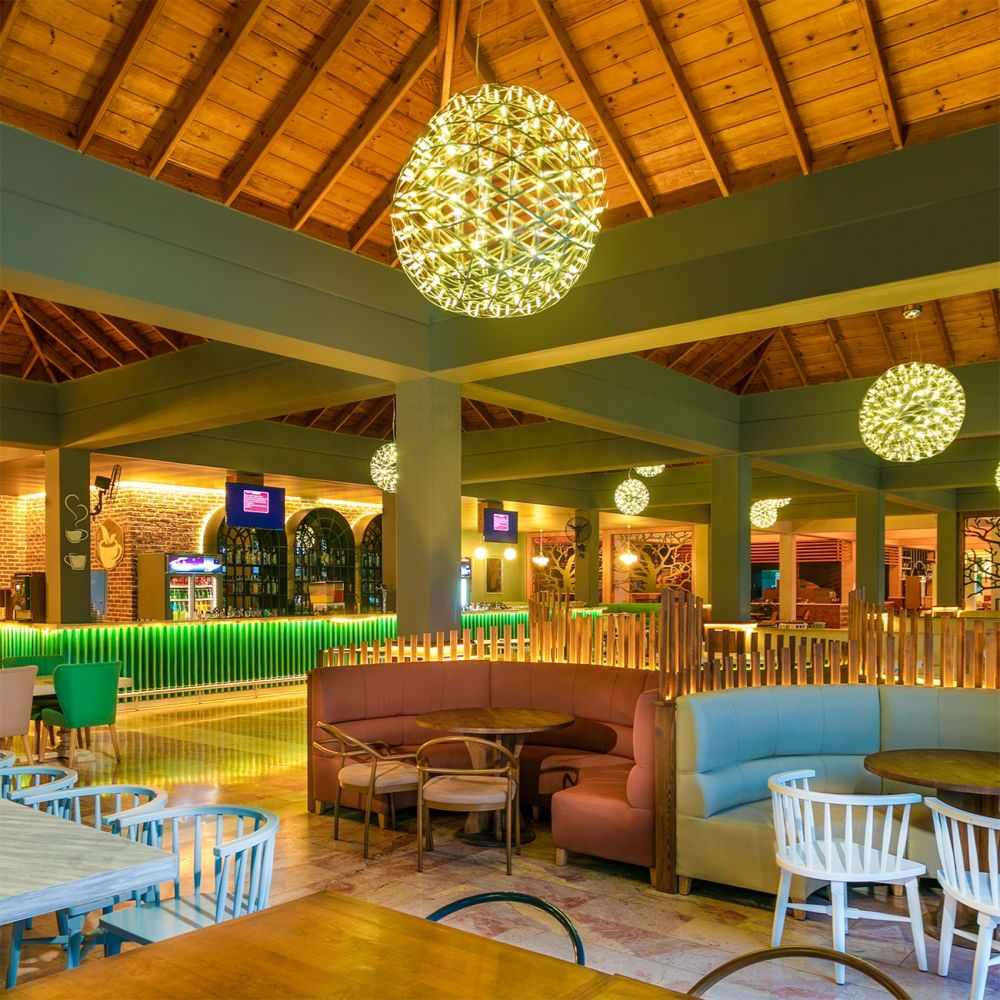 1 основен ресторант (VERANDA RESTAURANT), 4 а ла карт ресторанта (OLIVE TREE – World Cuisine , ROKA BEACH by TUANA – Asian Cuisine (Only for Adults and +16 Age), RISTORANTE ROMA – Italian Cuisine , PELAGOS - Seafood Restaurant),9 бара , 1 кафене , външен басейн, детски басейн, вътрешен басейн, , дискотека.