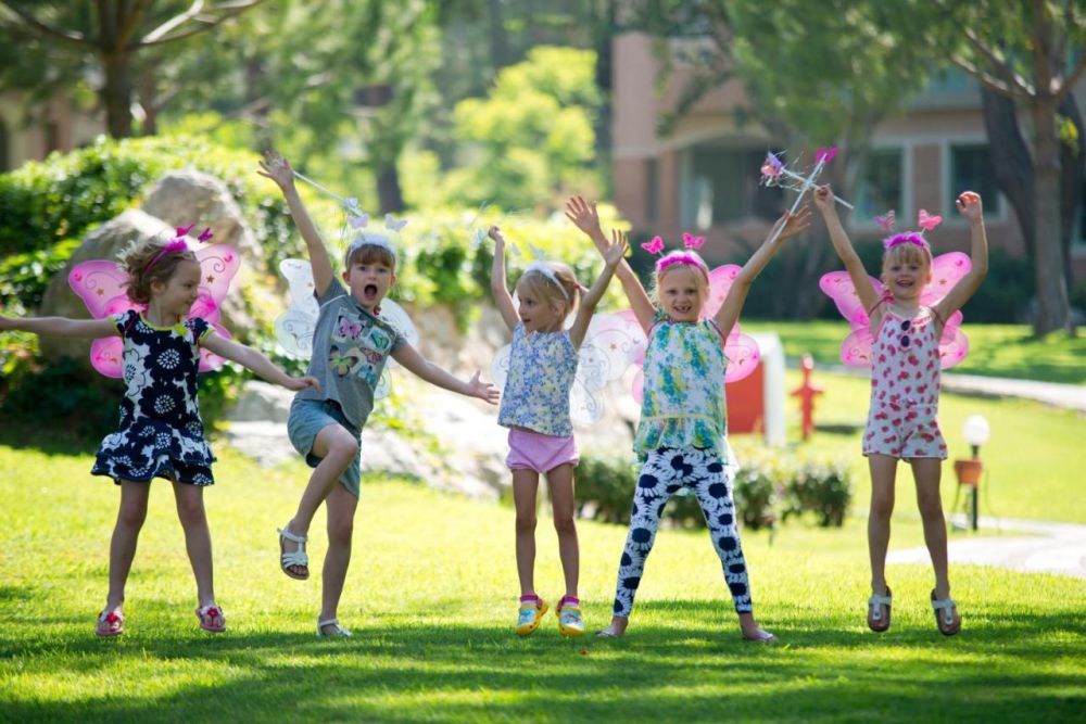 За децата: Baby Club ( 6м-3г), Snoopy Club(3-5г), Jokers Club (6-8г), Kid’s Club( 9-12г),Teens Club (13-17г) мини голф, професионална детска анимация, спортни кръжоци за деца (джудо, водни спортове, тенис, мрежа за катерене и пр.), "Детски рай" - детски комплекс с водни пързалки и с 8 детски басейна (1 от които отопляем), детски плаж, детски площадки, загадъчни пещери, съкровищни острови, детски амфитеатър.