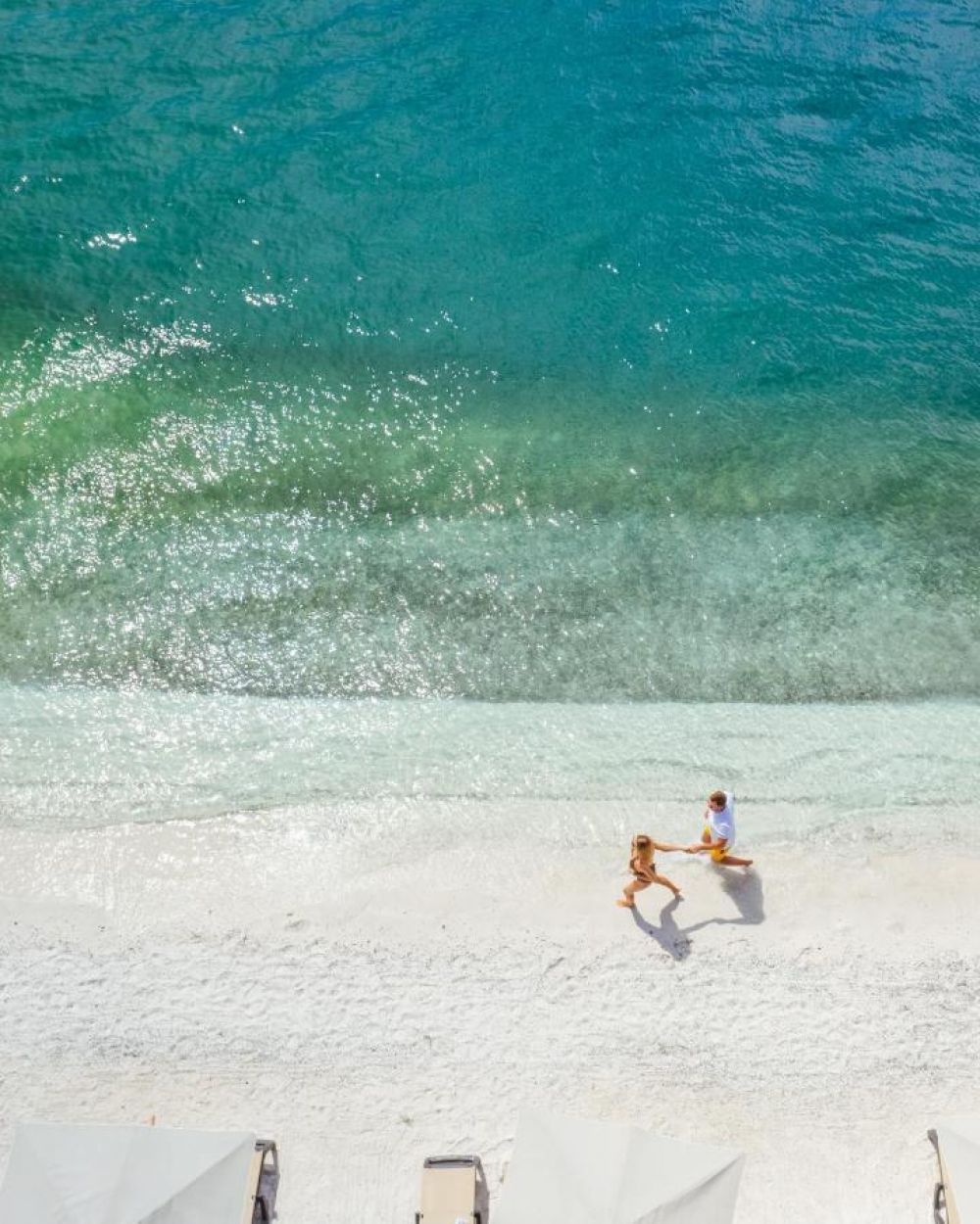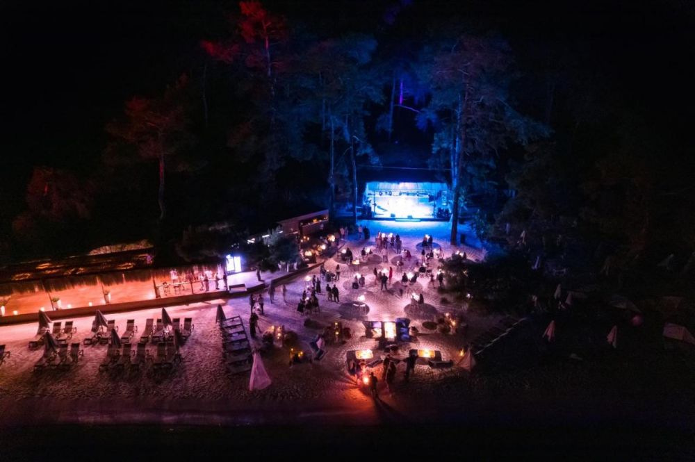 Собствен, пясъчен – чадъри и шезлонги на плажа и при басейна – безплатно, плажни кърпи – безплатно. Луксозни шатри - с предварителна резервация, срещу заплащане). Предлага се луксозно обслужване през целия ден. Всяка шатра разполага със сейф и мини бар, предлагат се списания, карти за игра Rixos, пъзели, шах, судоку.