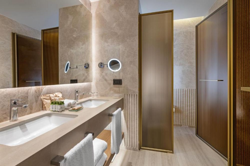 Всички стаи са оборудвани с климатик, телевизор, телефон, баня с душ/вана, сешоар, мини-бар, кафе машина , халат , козметика за баня, ютия сейф, балкон. Почистване на стаите - всеки ден, смяна на спалното бельо и кърпите – на всеки три дни. Възможност за избор на специален вид възглавница и аромат.