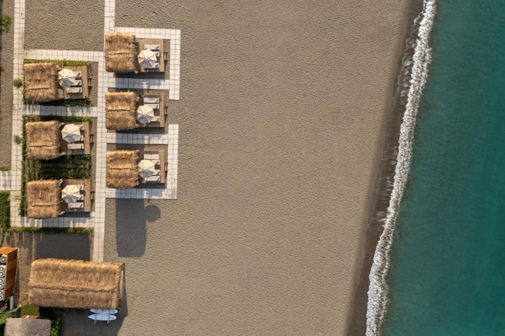 Собствен, пясъчен. Чадъри и шезлонги на плажа и при басейна - безплатно. Плажни кърпи - безплатно.
