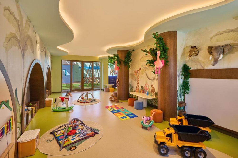 За деца на възраст 4–12 години: Отделни стаи за игра, предназначени за различни възрастови групи, Интерактивни дейности, Забавни спортни дейности за деца, Настолни игри и детски представления, Лего игри, Екипни дейности в стил „Оцеляване“, Рожден ден със специална концепция (платено), Анимационни канали в стаите, Детски бюфет (основен ресторант), Работилници (рисуване, танци, готвене), Детско меню, предлагано във всички ресторанти (с изключение на ресторант Petra +16 Adults Only), Зона за дейности на открито (при подходящо време), Детска площадка, Плувен басейн
