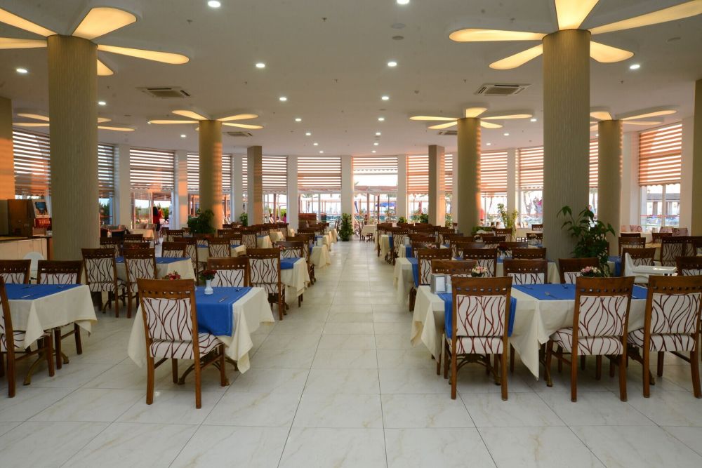 Основен ресторант, снек ресторант, 3 бара, открит басейн, закрит басейн, водни пързалки, магазини, СПА център, ТВ зала, паркинг.