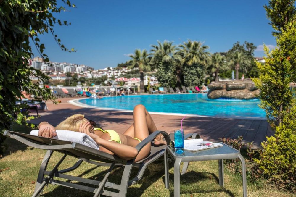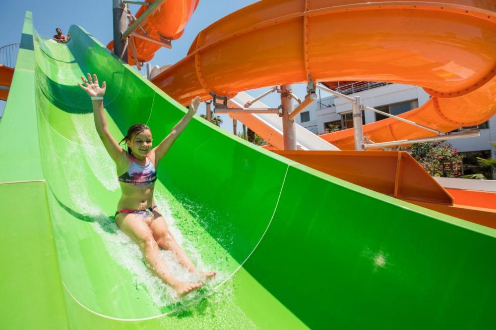 Основен ресторант, 2 бара, 2 открити басейна, закрит басейн (отопляем през студените месеци), водни пързалки, тв зала, магазини, паркинг.