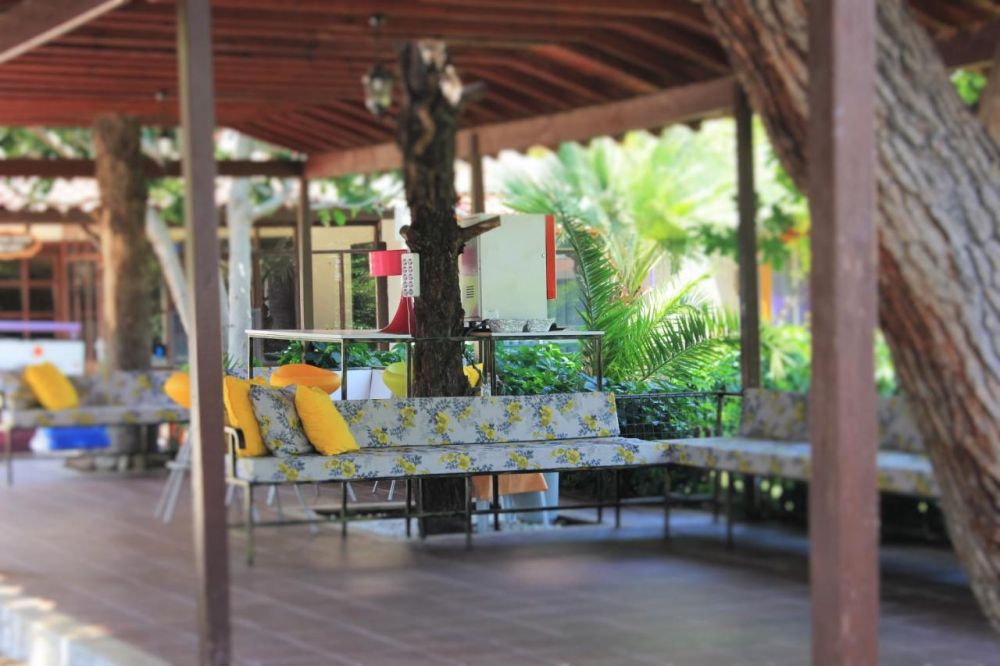 Основен ресторант, 2 бара, открит басейн, водна пързалка, магазини, тв зала, паркинг.