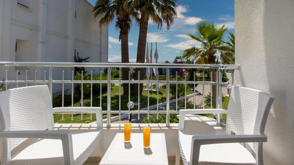 Плаж: собствен, пясъчно-чакълест със сертификат „Син флаг“. Чадъри и шезлонги при басейна и на плажа - безплатно.