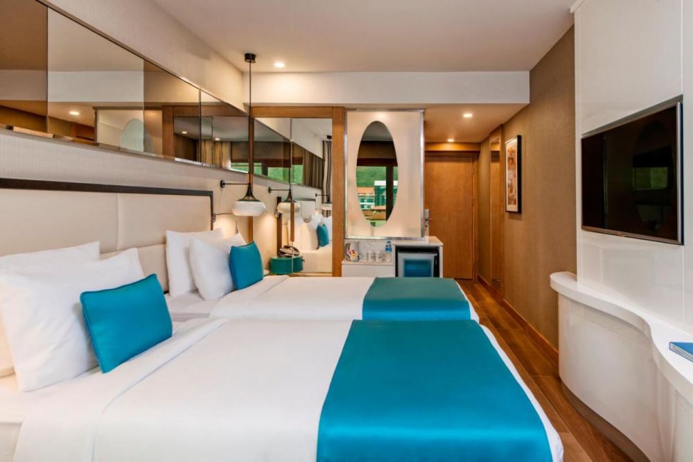 Хотелът разполага с 93 Deluxe room land view/ side sea view/ sea view. Всички стаи са оборудвани с климатик, телевизор, телефон, баня с душ/вана, сешоар, мини бар (безплатно - ежедневно зареждане с вода), сейф. Почистване на стаите- всеки ден, смяна на спално бельо и кърпи- 2 пъти в седмицата.