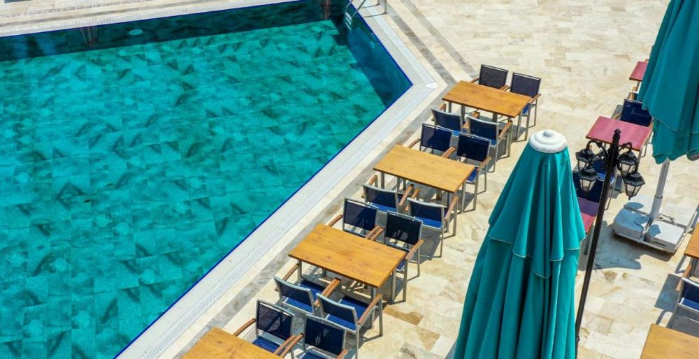 Основен ресторант, 2 бара (на басейна и в ресторанта), открит басейн, закрит басейн. Безплатни услуги: дартс, тенис на маса, интернет. Платени услуги: химическо чистене, магазини, лекар, детегледачка. ПЛАЖ: Градски, пясъчен- чадъри,шезлонги и матраци – срещу заплащане.