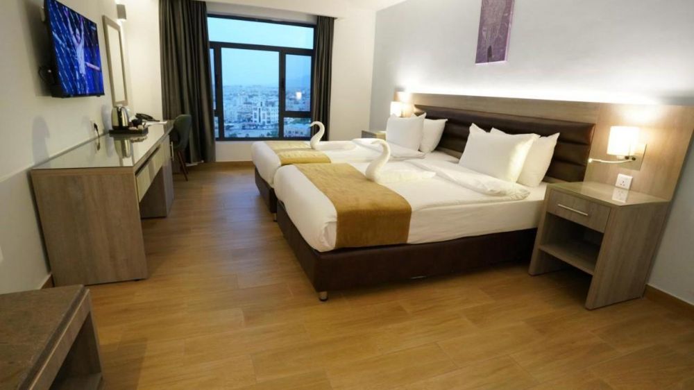 1,4 км от плаж Ал‑Гандур. Разположен е на първа линия, с частна плажна зона. Международно летище King Hussein е на около