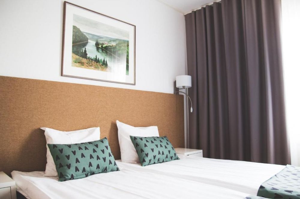 Хотелска базаХотелът с удоволствие посреща почиващите в общо 45 стаи. Удобства като, съхранение на багаж и сейф, допринасят за един комфортен престой. Чрез безжичен интернет в общите части (без допълнително заплащане) гостите имат постоянна връзка с глобалната мрежа. Изборът от заведения за хранене включва ресторант, зала за хранене и бар. Всичко това се допълва от градина. Към допълнителните удобства на хотела се числи сепаре с телевизор. Пристигналите с автомобил могат да ползват паркинга на хотелската база (без допълнително заплащане). Към екстрите, които са на разположение на гостите, спадат трансфер и пералня. Желаещите да разгледат съседните околности ще оценят възможността за наемане на велосипеди. Презентации, лекции или срещи могат да се проведат във всяка една от 2-те конферентни зали.НастаняванеВ стаите има всекидневна, кухненски бокс и санитарен възел. Пълноценна нощувка в стаите осигурява разтегателен диван. Налични са отделни спални. Освен това има писалище. Предоставени са също хладилник, котлон, микровълнова фурна и машина за приготвяне на чай или кафе. Към допълнителните удобства спада комплект ютия с дъска за гладене. Оборудването включва още интернет достъп, телефон, телевизор и безжичен интернет. Могат да се резервират стаи, подходящи за хора с двигателни проблеми. Комфортът в санитарния възел се осигурява от душ. Като допълнително удобство има сешоар. За по-голям комфорт в санитарните възли се осигуряват козметични продукти. Възможно е да бъдат резервирани стаи със санитарни възли, пригодени за хора в инвалидни колички. Хотелът предлага стаи за непушачи.Спорт/забавленияВъзможност за гъвкаво планиране на свободното време предлагат офертите за спорт и забавления. Лятната тераса подканя към отмора и релакс. Многообразие осигуряват различни оферти за свободното време, сред които велосипеди, фитнес-студио и сауна. Copyright GIATA 2004 - 2023. Multilingual, powered by www.giata.com for client no. 128106ХраненеМоже да се резервира нощувка със закуска. Като опция може да се избере закуска.Кредитни картиВ хотела се приемат следните кредитни карти: American Express, Visa, Diners Club и MasterCard.